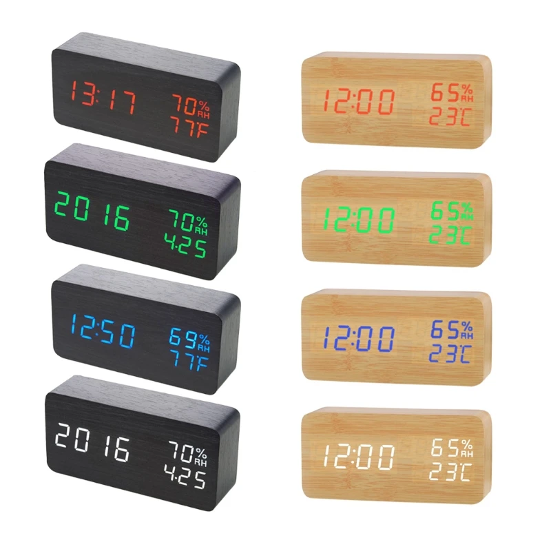 Rechargeable Alarm Clock Temperature Humidity Monitor Table Alarm Clocks Sound Control Snooze LED Digital Clocks Desktop Clocks
